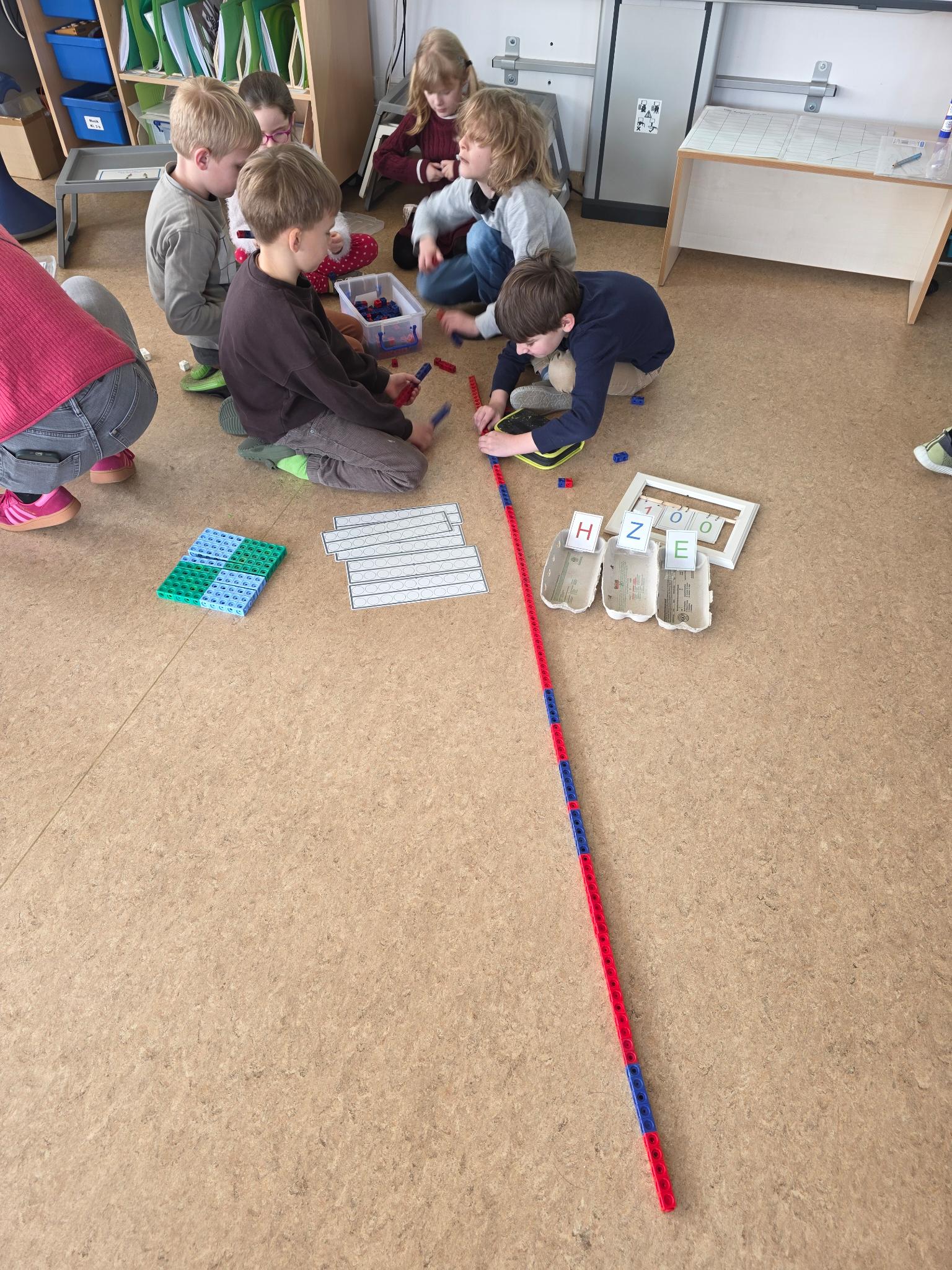 Unter dem Motto „Die magische 100“ verwandelten sich die Klassenzimmer der Eulen und Füchse in eine riesige Werkstatt, in der die Kinder an verschiedenen Stationen alles rund um diese besondere Zahl entdecken konnten.