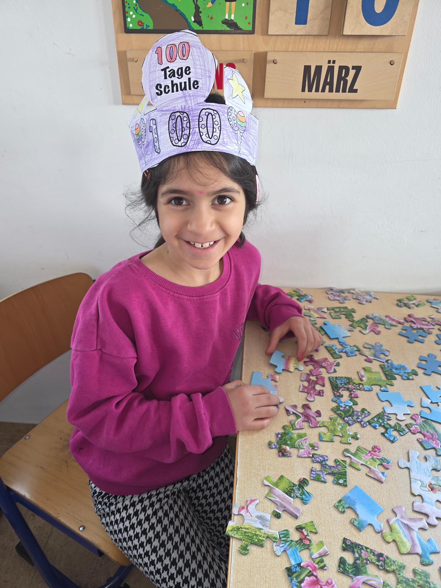 Das optische Highlight des Tages war jedoch die Bastelstation: Jedes Kind gestaltete stolz seine eigene „100 Tage Schulkind“-Krone. Mit glitzernden Kopfbedeckungen und einer Menge neuem Wissen im Gepäck endete dieser besondere Schultag.