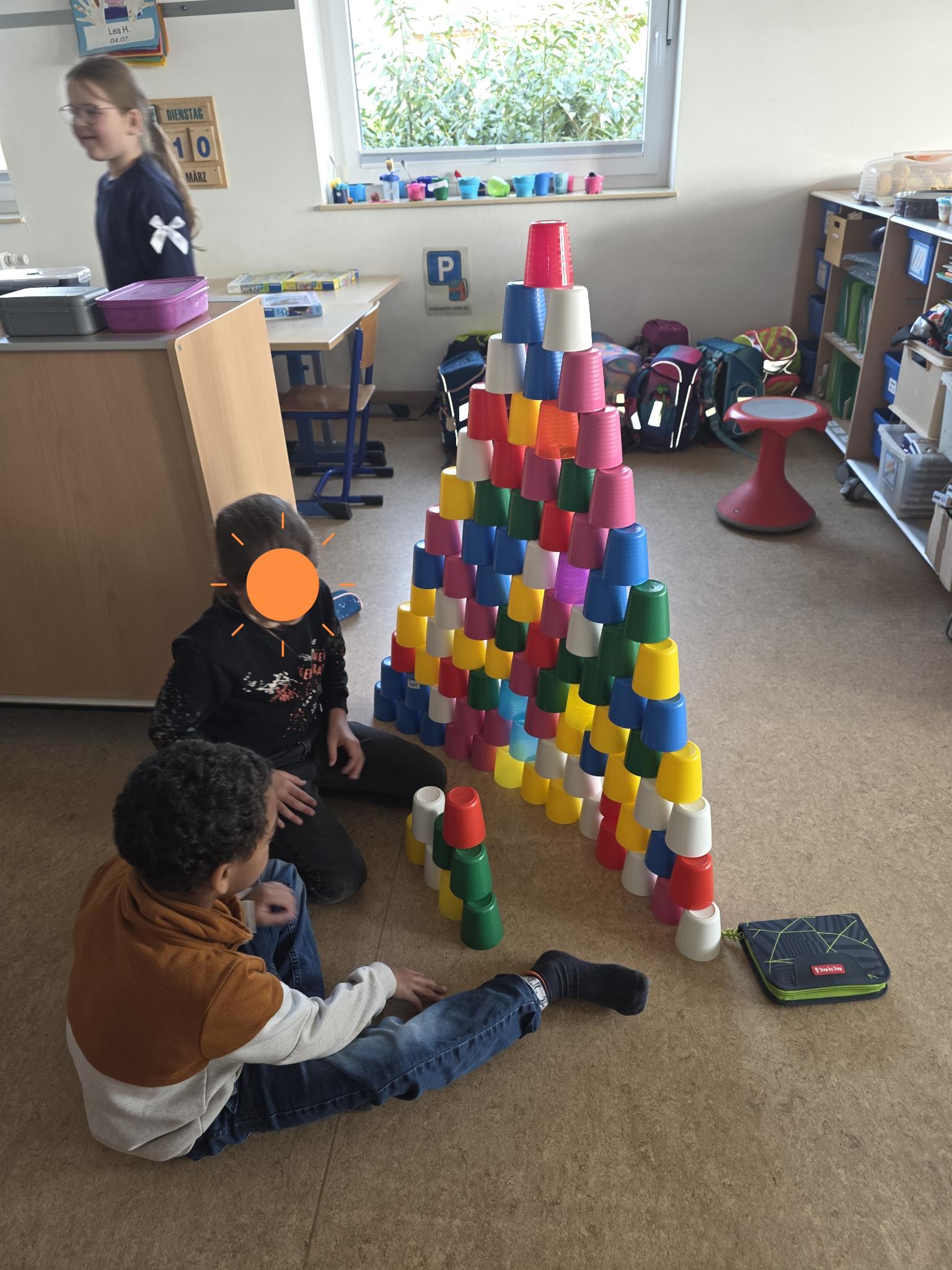 Bauen & Legen: Wer schafft es, einen Turm aus 100 Bechern zu stapeln, ohne dass er wackelt? Mit viel Fingerspitzengefühl entstanden zudem kreative Kunstwerke aus 100 Büroklammer.