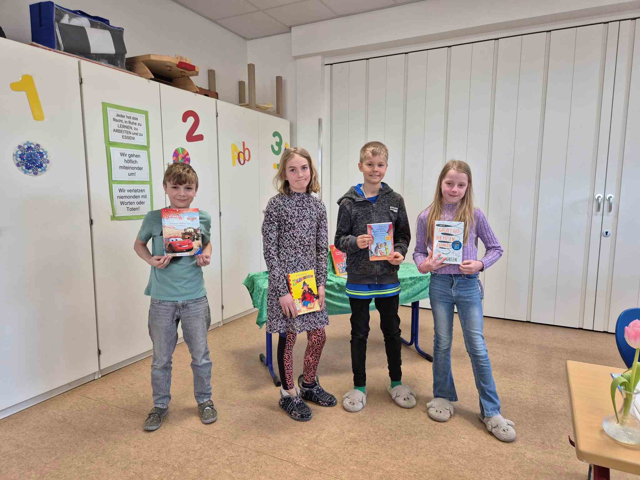Letzte Woche wurden wieder unsere besten Vorleserinnen und Vorleser ermittelt. In vier Wettbewerben traten die besten Leserinnen und Leser der Klassenstufen gegeneinander an und zeigten ihr Können. Mit viel Mut, Ausdruck und Lesefreude präsentierten die Kinder ihre Texte vor der Jury und dem Publikum. Zum Abschluss durften sich alle Teilnehmenden ein Buch vom Büchertisch aussuchen – eine schöne Erinnerung an diesen besonderen Tag.