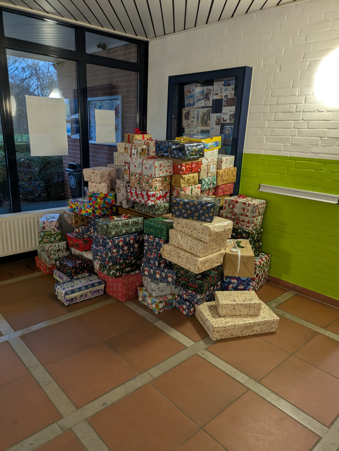 Seit den Herbstferien wurden an unserer Schule fleißig Päckchen gesammelt, um sie an hilfsbedürftige Familien und Einzelpersonen im ländlichen Raum Osteuropas weiterzugeben. Die Aktion war ein voller Erfolg: 108 Päckchen sind zusammengekommen. Wir möchten uns bei allen Beteiligten bedanken, die mit ihren Spenden und ihrer Unterstützung dazu beigetragen haben, dass diese Aktion so positiv verlaufen konnte.